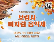 장흥군은 오는 10월 18일 보림사에서 '노벨문학도시 장흥, 보림사 비자림 음악제'를 개최한다고 전했다. 이번 음악제는 장흥이 노벨문학상 수상 작가 한강의 고향이라는 상징성을 바탕으로, 문학과 예술, 전통문화가 어우러진 문화축제로 기획됐다. 공연은 크로스오버 그룹 포레스텔라, 김경호와 9인 밴드가 폭발적인 라이브 무대를 선보인다. 또 감성 보컬의 진수 적우와 Mellow 현악 3중주는 고찰의 풍광과 어우러지는 서정적인 선율을 들려줄 예정이다. 사회는 배우 오지호와 2025 미스코리아 제주 진 함지윤 씨가 맡는다. 부대 행사로는 전미란 화백의 민화 작품 30점이 전시되고, 지역 특산물 판매, 문화제 해설 프로그램이 진행된다. 전남도와 장흥군이 후원하는 이번 음악회는 무료 공연이지만 모바일 티켓 신청(bbsevent.co.kr)이 필요하다. BBS 광주불교방송, 광주 백선청원모밀, 화순 석천사, 장흥군청, 보림사 등에서도 직접 신청할 수도 있다.