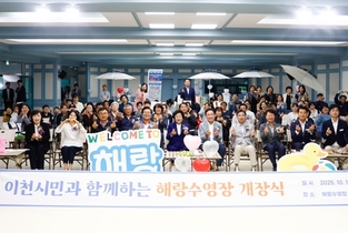 이천시(시장 김경희)는 지난 10월 13일, 부발읍 노동자종합복지관 내에 있는 '해랑수영장'의 개장 기념행사를 성황리에 마쳤다고 밝혔다. '해랑 수영장을 다시 시민의 품으로 퐁당'이라는 주제로 열린 이번 행사는 기존 마리나 수영장을 전면 리모델링하고 '해랑'이란 새 이름으로 개장한 것으로 김경희 이천시장, 박명서 이천시의회 의장, 허원 경기도의회 건설교통위원장 등 관내 기관·사회 단체장과 온라인 사전 신청을 통해 선정된 시민들이 함께하는 참여형 행사로 진행됐다. 수영장은 성인풀(25m, 5개 레인), 유아풀, 탈의실, 샤워실과 휴게 라운지 등의 편의시설을 갖추고 있다. 특히, 수영장 내 천창을 설치해 사계절 자연채광을 즐길 수 있고 자동환기가 가능하도록 개선했다. 오는 11월 1일부터 정식 운영에 들어가며, 이천 시민 누구나 이용할 수 있도록 강습 프로그램과 자유 수영 시간도 마련될 예정이다. 김경희 이천시장은 "해랑수영장은 시민들의 건강과 여가를 위한 공간으로 다시 태어났다"라며 "이천시는 다양한 생활 문화 인프라를 지속적으로 확충해 시민의 삶에 활력을 불어넣는 공간을 늘려가겠다"라고 밝혔다.