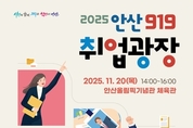 안산시(시장 이민근)는 오는 20일 '2025년 11월 안산 919취업광장'을 안산올림픽기념관 체육관에서 개최한다고 5일 밝혔다. 이번 '안산 919취업광장'은 안산시일자리센터와 지역 일자리 유관기관이 협업해 진행하는 올해의 마지막 채용행사다. 시는 인력난을 겪고 있는 기업체에 우수 인력을 지원하고 취업을 희망하는 구직자에게는 일자리 기회를 제공하는 등 미스매칭 해소를 통한 만남의 장을 마련한다. 이날은 우수기업체 30여 개 사가 참여할 예정이다. 한편, 안산시는 지난 9월 경기도와 공동으로 '안산시 스마트허브 2040&경기도 5070 통합 일자리박람회'를 개최해 40개 기업 면접에 1,300여 명이 참여한 바 있다. 참가를 원하는 구직자는 박람회 당일 이력서 등 입사 지원 서류를 지참해 방문하면 ▲1:1 채용면접 ▲1:1 이력서 컨설팅 등 현장에서 희망하는 기업에 지원하고 면접에 참여할 수 있다. 일자리 기관별 취업 상담 및 재무 상담도 받을 수 있다. 참여 기업 정보와 박람회 일정 등 자세한 내용은 안산시청 누리집 '안산시 주요서비스-취업(일자리)정보'에서 확인하거나, 안산시일자리센터(031-481-2931, 2919)로 전화 문의하면 안내받을 수 있다.