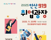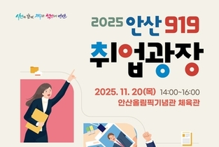 안산시(시장 이민근)는 오는 20일 '2025년 11월 안산 919취업광장'을 안산올림픽기념관 체육관에서 개최한다고 5일 밝혔다. 이번 '안산 919취업광장'은 안산시일자리센터와 지역 일자리 유관기관이 협업해 진행하는 올해의 마지막 채용행사다. 시는 인력난을 겪고 있는 기업체에 우수 인력을 지원하고 취업을 희망하는 구직자에게는 일자리 기회를 제공하는 등 미스매칭 해소를 통한 만남의 장을 마련한다. 이날은 우수기업체 30여 개 사가 참여할 예정이다. 한편, 안산시는 지난 9월 경기도와 공동으로 '안산시 스마트허브 2040&경기도 5070 통합 일자리박람회'를 개최해 40개 기업 면접에 1,300여 명이 참여한 바 있다. 참가를 원하는 구직자는 박람회 당일 이력서 등 입사 지원 서류를 지참해 방문하면 ▲1:1 채용면접 ▲1:1 이력서 컨설팅 등 현장에서 희망하는 기업에 지원하고 면접에 참여할 수 있다. 일자리 기관별 취업 상담 및 재무 상담도 받을 수 있다. 참여 기업 정보와 박람회 일정 등 자세한 내용은 안산시청 누리집 '안산시 주요서비스-취업(일자리)정보'에서 확인하거나, 안산시일자리센터(031-481-2931, 2919)로 전화 문의하면 안내받을 수 있다.