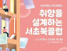 서울 서초구(구청장 전성수)는 오는 15일 심산기념문화센터에서 진정한 독서의 즐거움을 누릴 수 있는 독서문화축제 '서초책있는거리 북앤드(&) - 취향을 설계하는 서초북클럽'을 개최한다고 밝혔다. '서초책있는거리 북앤드'는 지역 내 독서 문화 활성화와 독서 공동체 간의 교류 증진을 목표로, 서초구에서 활동하는 다양한 독서동아리와 자신의 독서 취향을 나누고 싶은 사람들을 위한 행사다. 지난 봄, 여름, 가을 반포대로 서초책있는거리에서 북런치(4월), 북캉스(6월), 북캠핑(10월)으로 가족과 어린이들이 도심 속 거리의 독서문화축제를 즐겼다면, 이번에는 소규모의 북클럽을 대상으로 취향의 발견과 상호 연결에 초점을 맞췄다. 15일 오전 12시부터 시작되는 행사에는 지역에서 활동하는 독서동아리들을 한눈에 볼 수 있는 '서초독서동아리 네트워크 전시'와 서초구 독서회를 소개하고 새로운 회원도 모집하는 '우리 동네 북클럽 부스'가 마련된다. 명화 미니북으로 책갈피를 만들어보는 등 소규모 체험들도 진행될 예정이다. 이와 함께 독립출판사 홍보부스도 운영돼 곰곰출판, 여름의 서재 등 5개의 독립출판사가 참여한다. 기존 출판 시장에서는 접하기 어려운 뚜렷한 개성과 철학을 가진 독