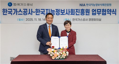 한국가스공사(사장 최연혜)는 11월 18일 대구 본사에서 한국지능정보사회진흥원(원장 황종성, 이하 NIA)과 'AI 협력을 위한 업무협약'을 체결했다고 19일 밝혔다.
