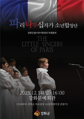 강화군(군수 박용철)은 오는 12월 14일 강화문예회관에서 '세계 3대 소년합창단'으로 불리는 파리나무십자가소년합창단의 공연을 개최한다고 밝혔다.