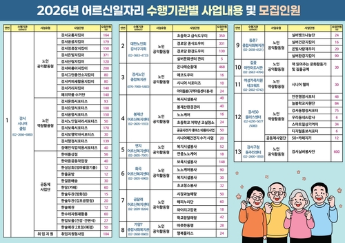 서울 강서구(구청장 진교훈)가 '2026년 어르신일자리 및 사회활동 지원사업' 참여자 6,083명을 오는 12일까지 모집한다.