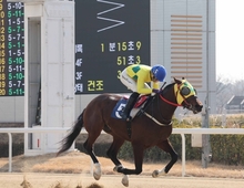 지난 13일 렛츠런파크 부산경남 제1경주에서 진겸 기수가 통산 300승을 달성했다. 특히 대기록을 앞둔 부담스러운 상황에서도 그는 특유의 차분한 성격과 흔들리지 않는 평정심을 발휘하며 기량을 유감없이 뽐냈다. 이날 진겸 기수가 기승한 '더포인트(3세, 수, 마주 김호종, 조교사 김도현)'는 경주를 시작하기 전부터 많은 기대를 모았다. 출발과 동시에 선두권으로 치고 나갔고, 4코너까지 '라이트닝포스'와 치열한 선두 다툼을 벌였다. 승부는 직선 주로에서 갈렸다. 진겸 기수의 침착한 경기 운영 속에 탄력을 받은 '더포인트'는 점차 속도를 내며 단독 선두로 나섰고, 2위마와 무려 5마신차를 벌리며 여유롭게 결승선을 통과했다. 올해로 데뷔 11년째를 맞은 진겸 기수는 한때 승마선수를 꿈꿨으나 스피드의 매력에 빠져 경마 기수로 전향한 독특한 이력을 가지고 있다. 그의 탁월한 운동신경과 민첩함은 데뷔 동기 중 가장 빠르게 300승을 달성할 수 있었던 원동력으로 꼽힌다. 그는 현재 통산 전적 2830전 303승으로 승률 10.7%를 기록 중이다. 진 기수의 차분한 성격은 그의 트레이드마크이자 가장 큰 무기다. 이는 지난해 경주마 '오아시스블루'와 환상의 호흡을 맞추며 트리