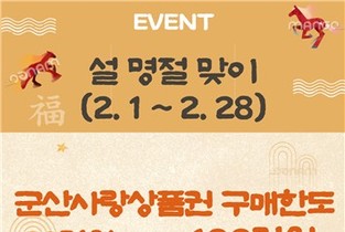 군산시가 설 명절을 맞아 2월 한 달간 군산사랑상품권의 1인당 월 구매 한도를 기존 70만 원에서 100만 원으로 한시적으로 전격 상향한다고 26일 밝혔다. 이번 사업은 설 명절 소비 집중 시기에 맞춰 ▲가계 부담 완화 ▲소상공인의 매출 증대 견인 ▲민생 안정 제고 ▲지역 상권 활성화를 위해 마련됐다. 이에 따라 소비자들은 2월 1일부터 28일까지 지류 상품권(10만 원→30만 원)과 카드·모바일 상품권(70만 원→100만 원)을 합산, 한 달 동안 1인당 월 최대 100만 원까지 상품권 구입이 가능하다. 단, 지류 상품권은 65세 이상 (1961년생까지)만 구매할 수 있고, 보유 한도도 종전과 같이 150만 원이다. 할인율은 기존과 같이 100만 원을 충전하면 10% 선할인 적용을 받아 10만 원의 혜택을 받을 수 있다. 종전(70만 원 충전·7만 원 혜택)과 비교하면 3만 원의 혜택이 늘어나는 셈이다. 특히, 지류 상품권의 구매 한도를 30만 원으로 한시적 상향해 지류를 선호하는 65세 이상 어르신들의 이용 편의를 제공하게 됐다. 이헌현 군산시 일자리경제과 과장은 "설 명절을 맞아 추진하는 이번 구매 한도 상향이 시민들의 경제적 부담을 경감시키고, 소상공
