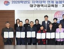 대구시교육청(강은희 교육감)은 1월 27일(화) 시교육청 여민실에서 지역대학 10곳과 '2026학년도 늘봄학교 프로그램 운영'을 위한 업무협약을 체결한다고 밝혔다. 대구시교육청은 2026학년도 늘봄학교 프로그램 운영을 대비해, 지난해 11월에 '지역대학 연계 늘봄학교 프로그램 운영 사업'을 공모했다. 공모로 선정된 지역대학은 ▲대구교대 ▲김천대 ▲대구가톨릭대 ▲대구한의대 ▲대구예술대 ▲대구대 ▲대구공업대 ▲대구사이버대 ▲동국대 ▲영남대 등 10곳이다. 업무협약의 주요 내용은 늘봄 프로그램 운영을 위한 프로그램 및 강사 지원이며, 10개 지역대학의 총장 또는 산학협력단장 등이 참석할 예정이다. 이번 공모에서 선정된 '지역대학 연계 늘봄 프로그램'은 ▲나는야 응원단장 치어리딩 ▲디지털드로잉 예술놀이터 ▲상상 롤러코스터 골드버그 ▲신체놀이 몸도 마음도 쑥쑥 ▲꿈을 그리는 3D펜 창작교실 ▲스내그골프 ▲두근두근 마음성장 탐험대 등 총 56종으로 초등 1∼2학년 학생들의 흥미와 발달 단계를 반영했다. 대구시교육청은 대학 프로그램들을 학교로 안내해, 1학기 프로그램은 3월부터 257개 교실에서 운영되고, 2학기 프로그램은 6월 중 학교로부터 신청을 받아 2학기 학사일정