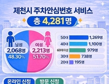 제천시는 도내 최초로 도입한 '주차안심번호 서비스' 신청 접수를 지난 2월 28일 마감했다고 밝혔다. 시민의 개인정보 보호와 안전한 주차 환경 조성을 위해 추진된 이번 사업에는 총 4,281명의 시민이 참여해 높은 관심을 보였다. 이 서비스는 개인 휴대전화 번호 대신 가상의 안심번호를 차량에 비치함으로써 개인정보 노출을 방지하고 보다 안전한 차량 관리 환경을 제공하는 제도다. 신청자는 여성 51.7%(2,213명), 남성 48.3%(2,068명)로 여성 비율이 더 높았다. 연령대별로는 50대가 29.6%(1,269명)로 가장 많았으며, 40대 25.7%(1,100명), 60대 이상 22.8%(979명), 30대 17.2%(738명), 20대 4.6%(195명) 순으로 나타났다. 특히 40∼50대에서는 여성 비율이 높았고, 60대 이상에서는 남성 비율이 상대적으로 높게 나타났다. 신청 경로는 온라인 신청이 72.6%(3,106명)로, 방문 신청 27.4%(1,175명)보다 월등히 많았다. 온라인 신청은 시간과 장소의 제약 없이 편리하게 이용할 수 있어 전체 신청자의 약 4명 중 3명이 선택한 것으로 분석된다. 방문 신청은 온라인 이용이 어려운 시민을 위한 보완