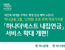 하나금융그룹(회장 함영주)은 12억원 초과 주택을 보유 중인 만 55세 이상의 시니어 손님들을 위한 역모기지론 상품 '하나더넥스트 내집연금(이하 '내집연금')'의 서비스 범위를 다음달 1일부터 확대 개편한다고 밝혔다. 금융권 최초이자 유일한 12억원 초과 주택 역모기지론 '내집연금'은 시니어 세대의 최대 고민인 은퇴 후 소득 절벽과 거주 안정성을 동시에 해결하기 위해 하나은행과 하나생명이 공동 개발한 민간 주택연금 상품이다. '내집연금'에 가입한 손님은 하나은행에 보유하던 주택을 신탁하고 하나생명을 통해 매월 연금을 지급받게 된다. 이번 서비스 확대 개편의 가장 큰 특징은 가입 대상의 확대다. 종전에는 재건축·재개발을 추진 중인 단지에서 사업단계가 조합설립인가 및 사업시행인가 단계에 있는 주택은 신탁 설정으로 조합원 자격을 상실해 상품 가입이 어려웠다. 이를 보완하기 위해 조합설립인가 또는 사업시행인가 단계의 재건축·재개발 주택을 보유한 손님이 '내집연금'에 가입할 경우 근저당권 방식을 일정기간 동안 예외 적용함으로써, 조합원 자격을 유지할 수 있도록 했다. 주택이 완공돼 등기 이전까지 완료된 후에는 담보 설정을 신탁 방식으로 전환하면 된다. 또한, 기존 가