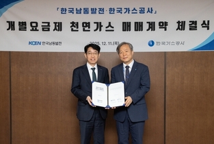 한국가스공사(사장 최연혜)는 12월 11일 대구 본사에서 한국남동발전(사장 강기윤)과 발전용 개별요금제 천연가스 매매계약을 체결했다고 밝혔다. 이날 행사에는 박성준 가스공사 영업처장과 강호선 남동발전 조달계약처장을 비롯한 양사 관계자 10여 명이 참석했다. 이 계약으로 가스공사는 2027년부터 2036년까지 10년간 분당복합화력발전소 1블록(연료전지 포함)에 연간 29만 톤, 전체 290만 톤 규모의 천연가스를 공급한다. 가스공사는 국내 최고 수준의 가격 경쟁력과 공급 안정성을 바탕으로 지난 6월 서부발전과 9월 남부발전, 11월 중부발전에 이어 남동발전까지 개별요금제 고객으로 유치했다. 개별요금제는 안정적인 천연가스 수급 관리와 시설 이용률 향상을 통한 공급비용 인하를 위해 2020년 도입됐다. 특히, 남동발전은 분당복합화력발전소가 수도권 지역에 대한 전력 생산 중추를 담당하는 핵심 발전시설이라는 점에서 공급 안정성과 가격 경쟁력이 뛰어난 개별요금제를 선택한 것으로 알려졌다. 가스공사는 현재 연간 약 389만 톤의 누적 매매계약 물량을 달성했으며, 앞으로도 개별요금제 공급을 계속 늘려간다는 계획이다. 박성준 가스공사 영업처장은 "이번 계약은 단순한 천연가스
