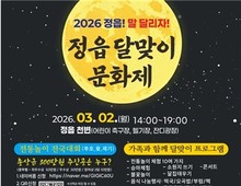정읍문화원이 2026년 정월대보름을 맞아 오는 3월 2일 정읍 천변 어린이 축구장 일원에서 2026 정읍 달맞이 문화제 '정읍! 말 달리자!'를 개최한다. 이번 행사는 사라져가는 세시풍속을 계승하고 시민의 안녕을 기원하기 위해 마련됐다. 이번 문화제는 정월대보름의 전통을 잇고 시민이 함께 어우러지는 참여형 전통문화 축제로 기획됐다. 행사는 전통놀이 전국대회를 비롯해 안녕기원제, 달집태우기 등 남녀노소 누구나 즐길 수 있는 다양한 프로그램으로 채워진다. 특히 이번 축제의 핵심 프로그램인 전통놀이 전국대회에 대한 관심이 뜨겁다. 대회는 3월 2일 오후 2시부터 5시까지 행사장 내 전용 경기장에서 열리며 제기차기, 윷놀이, 투호 등 3개 종목으로 나뉘어 진행된다. 윷놀이는 팀 대항전으로 치러지며 제기차기와 투호는 개인전으로 승부를 가린다. 현재 문화원은 투호와 제기차기 종목에 도전할 참가자를 선착순으로 모집하고 있다. 참가를 희망하는 시민은 QR코드를 이용하거나 정읍문화원(063-532-0222)으로 전화해 신청하면 된다. 대회 수상자에게는 오후 6시에 열리는 기념식에서 정읍시장상 등 상장과 소정의 상금이 수여될 예정이다. 행사 당일에는 흥겨운 축하 공연을 시작으