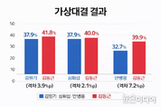 다가오는 6월 3일 제9회 전국동시지방선거를 앞두고 언론사 (관점이 있는 뉴스)프레시안이 여론조사기관 한국사회여론연구소(KSOI)에 의뢰해 의정부시장 가상대결 여론조사를 발표했다. 이번 가상대결 여론조사에서는 국민의힘 김동근 현 의정부시장이 거론되는 더불어민주당 후보들 안병용, 김원기, 심화섭 모두에 1:1 대결에서 모두 앞서는 결과를 보였다. 정당 지지도는 더불어민주당 47.1%, 국민의힘 31.3%로 더불어민주당이 크게 앞섰지만 후보자간 가상 대결에서는 국민의힘 소속 김동근 시장의 손을 들어준 것이다 대통령 국정 운영에 대한 평가는 ‘매우 잘함’ 40.8%, ‘잘하는 편’ 17.7%로 긍정 합계 58.4%에 달했다. 통상 이런 여건에서는 야당 소속 지방자치단체장이 불리하게 나타나는 것이 일반적이나, 의정부 유권자들이 중앙정치에 대한 평가와, 시를 운영하는 시장 후보 선택에 대한 판단을 분리하고 있는 것으로 풀이 된다 특이점으로는 민주당 후보간 지지율 차이로, 김동근 시장과의 격차가 가장 작은(격차 2.1%p) 후보는 심화섭으로 민주당 후보군중 가장 신인이고, 김동근 시장과 가장 큰 격차(격차 7.2%p)를 보인 후보는 3선 경력의 안병용 전시장으로 나타났