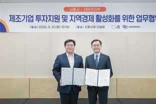시흥시(시장 임병택)는 지난 3월 31일 시청 다슬방에서 대덕전자(주)와 '제조기업 투자지원 및 지역경제 활성화를 위한 업무협약'을 체결했다. 반도체 및 네트워크용 인쇄회로기판 제조업체인 대덕전자(주)는 시흥시 정왕동 시화국가산업단지 내 다층 메모리 기판 생산능력 확대를 위해 공장 증축 등 대규모 투자를 추진할 계획이다. 시는 이번 투자사업이 원활히 추진될 수 있도록 행정적 지원을 강화하고, 이를 통해 지역경제 활성화와 양질의 일자리 창출을 도모하고자 협약을 추진했다. 협약의 주요 내용은 ▲지역산업의 지속가능한 성장과 산업 기반 조성을 위한 행정적 지원 협력 ▲중소기업 판로 확대를 위한 지역 생산품 활용 협력 ▲일자리 창출 및 고용 활성화를 위한 지역 인력 우선 채용 방안 협력 등이다. 시는 반도체 산업 환경 변화에 대응해 기업의 전략적 투자가 신속히 이뤄질 수 있도록 인허가 등 행정 절차를 적극 지원할 방침이다. 대덕전자(주)는 관내 기업 제품 활용 확대와 중소기업 판로개척을 지원하고, 지역 인재 우선 채용 등을 통해 상생 협력에 나설 계획이다. 특히 이번 협약은 반도체 관련 첨단 제조업 경쟁력을 강화하고, 협력업체와 소상공인까지 파급 효과를 확산시켜 지역