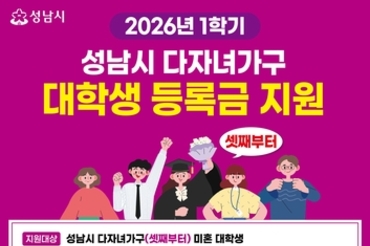 성남시, 셋째 이상 대학생에 '학기당 최대 100만 원' 등록금 지원