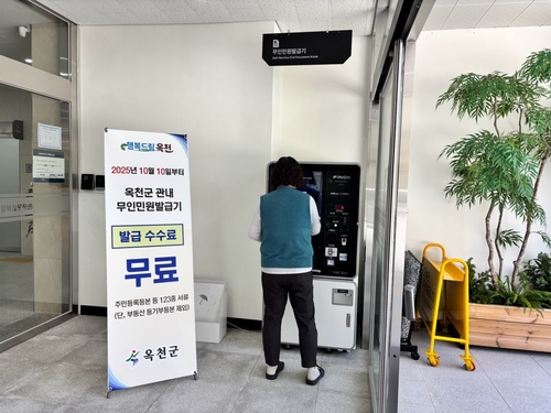 또한 지난 10월 10일부터 개정된 '옥천군 제증명 등 수수료 징수 조례' 시행에 따라 모든 무인민원발급기 수수료를 전면 무료화해 군민 누구나 부담 없이 설치된 무인민원발급기에서 주민등록등본, 가족관계증명서 등 총 123종의 제증명 서류를 무료로 발급받을 수 있다.