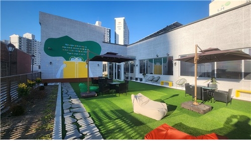 산본도서관(군포시 광정로 96) 3층 옥상(168㎡)은 기존 유휴 공간을 활용해 야외 테이블 세트, 인조 잔디, 목재 데크, 소규모 정원, 빈백 등 편안한 휴게시설을 갖춘 복합 힐링 공간으로 재정비됐다. 청소년을 비롯한 시민 누구나 편안하게 머물며 휴식하고 소통할 수 있는 도심 속 쉼터로 거듭난 것이다.