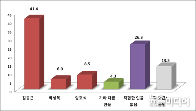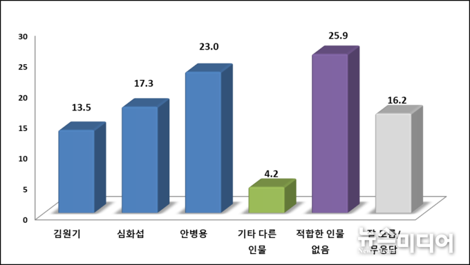 정당별 후보적합도에서 <적합한 인물이 없음>에 응답한 비율은 더불어민주당 25.9% 국민의힘26.3%를 각각 기록했다.