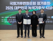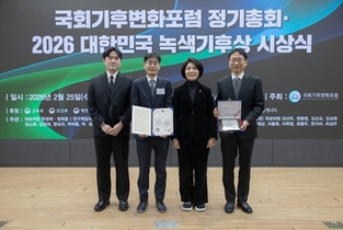 한국가스공사(사장 최연혜)는 2월 25일 서울 영등포구 여의도 국회의원회관에서 열린 '2026 대한민국 녹색기후상 시상식'에서 감축·적응 부문 우수기관으로 선정되어 산업통상부장관상을 수상했다고 밝혔다. 국회기후변화포럼이 주최하고 한국환경공단이 후원하는 '대한민국 녹색기후상'은 범국민적 기후변화 대응과 지속가능한 탄소중립 사회 조성에 기여한 개인 및 단체를 포상하기 위해 2010년 제정된 상이다. 올해로 16회차를 맞은 이번 시상식에는 총 153개 기관이 응모해 단 13개 기관만이 선정됐으며, 가스공사는 치열한 경쟁 속에서 에너지 공공기관 중 유일하게 '감축·적응 부문' 장관상을 수상하며 온실가스 감축 및 기후위기 대응 역량을 입증했다. 가스공사는 이번 심사에서 ▲책임 있는 탄소중립 사업장 기반 구축, ▲민간부문 탄소감축 확산을 위한 디딤돌 역할 수행, ▲국제사회 협력을 통한 탄소중립 규제 선도, ▲국민 체감형 기후위기 대응 활동 등 전방위적인 노력을 높게 평가받았다. 구체적으로 가스공사는 자체 수립한 온실가스 감축 로드맵을 기반으로 천연가스 공급 과정에서 버려지는 압력 에너지를 활용한 '천연가스 감압발전'을 확대하고, 2025년 국제 탄소정보공개(CDP) 기
