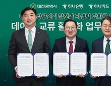 하나은행(은행장 이호성)과 하나카드(대표이사 성영수)는 지난 16일 대전광역시(시장 이장우)와 함께 '데이터 교류 활성화를 위한 업무협약'을 체결하고 지역사회 발전 및 소상공인의 자생력 강화를 위해 상호 협력키로 했다고 밝혔다. 이번 업무협약은 민(民)·관(官)이 데이터 협력을 통해 소상공인을 위한 금융정책 및 상품을 개발해 지역 상권을 활성화하고, ESG 행정 등 지역 현안에 기민하게 대응하기 위해 마련됐다. 이를 위해 하나은행과 하나카드는 ▲지역 상권 현황 ▲소상공인 금융거래 동향 ▲소비 트렌드 ▲외국인 손님 분석 등 다양한 금융거래 데이터를 대전광역시와 교류할 계획이며, 대전광역시는 제공받은 데이터를 통해 ▲지역경제 활성화 ▲관광정책 ▲지역화폐 분석 등 보다 정밀한 소상공인 지원 정책을 수립하는데 활용할 예정이다. 대전광역시청에서 진행된 이날 협약식에서 성영수 하나카드 대표와 이동열 하나은행 충청영업그룹 부행장은 침체된 지역경제의 위기 극복 및 균형 성장의 필요성을 함께 공감하고, 정책마련을 위한 데이터 활용 이외에도 지역화폐, 정책금융, 축제·행사 등 정책효과 분석에도 협업키로 했다. 특히, 하나은행과 하나카드가 보유한 ▲소상공인 업종·규모별 분석 ▲