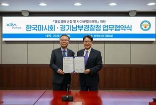 한국마사회(회장 우희종)는 4월 10일(금) 서울경마공원 대회의실에서 경기남부경찰청(청장 황창선)과 '불법경마 근절 및 사이버범죄 예방을 위한 업무협약(MOU)'을 체결했다. 이번 협약은 첨단 ICT 기술을 활용해 갈수록 지능화·대형화하는 불법 사이버도박에 공동 대응하기 위해 마련됐다. 2025년 기준 불법경마 시장 규모는 약 7.1조 원에 달하는 것으로 추산되며, 스미싱 등 일반 국민을 겨냥한 사이버범죄도 사회적 문제로 부각되고 있다. 이날 협약식에는 한국마사회 우희종 회장, 송대영 경마본부장, 탁성현 공정관리처장과, 경기남부경찰청 황창선 청장, 최기영 수사부장, 김성택 사이버수사1대장이 참석했다. 양 기관은 이번 협약을 통해 ▲마사회 경마방송·전광판 등 홍보매체를 활용한 사이버범죄 예방 홍보 강화 ▲불법경마사이트 정보 공유 및 합동단속 체계 구축 ▲불법경마 신고·대응 시스템 운영 ▲단속 역량 강화를 위한 교육·노하우 상호 지원 등을 추진하기로 했다. 우희종 한국마사회 회장은 "이번 협약이 불법경마와 사이버범죄로부터 국민을 보호하는 실질적인 협력의 출발점이 되길 바란다"며 "앞으로도 관계 기관과의 긴밀한 공조를 통해 건전한 마사문화 정착에 최선을 다하겠다"