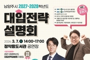 남양주시는 오는 3월 7일 정약용도서관 공연장에서 관내 고등학생과 학부모를 대상으로 '남양주시 2027∼2028학년도 대입전략설명회'를 열고, 이에 앞서 2월 9일부터 참가 신청 접수를 진행한다. 이번 설명회는 새 학년이 시작되는 시기에 맞춰 변화하는 대학입시 환경에 대한 최신 정보를 제공하고, 학생과 학부모가 새로운 입시 제도에 신속하고 안정적으로 대응할 수 있도록 지원하고자 마련됐다. 설명회에는 EBS 입시대표강사 김진석, EBS 입시전문가 조만기, 관내 고등학교를 졸업한 대학생 멘토가 참여한다. 주요 내용은 ▲2027학년도 대입 핵심 가이드 ▲2028학년도 달라지는 입시 제도 이해 ▲지역의사제 주요 내용 안내 ▲대학생 선배가 전하는 대입 준비 경험 등으로 구성됐다. 특히 이번 설명회에서는 2027학년도부터 시행되는 지역의사제 관련 제도의 취지와 전형 구조를 함께 안내한다. 남양주시가 지역의사제 적용 권역에 포함됨에 따라 관내 학생들의 의대 진학 기회 확대와 함께 남양주시의 교육 경쟁력도 한층 강화될 것으로 기대된다. 아울러 우수 인재의 지역 정착과 학군 경쟁력 강화, 인구 유입 등 교육과 의료가 연계된 선순환 구조도 형성될 것으로 전망된다. 설명회 참여