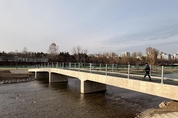 성남시는 분당구 수내동 44번지 일원 탄천에 맴돌공원 보도교 설치를 완료해 개통했다고 16일 밝혔다. 이번 보도교는 백현동 3단지 앞 성남시 파크골프장 B구장 지점과 수내동 맴돌공원 물놀이장(분당구청 쪽) 지점을 동서로 연결한다. 시는 탄천 맴돌공원 보도교 설치를 위해 올해 3월부터 최근까지 9개월간 12억8100만원을 투입했다. 맴돌공원 보도교는 길이 58m, 폭 5m 규모이며, 기존 징검다리를 철거한 뒤 설치했다. 이번 보도교 개통으로 그동안 유모차, 자전거, 휠체어 이용 시민들이 탄천을 건너기 위해 각각 600m가량 떨어진 수내교나 서현교로 돌아가야 했던 불편을 해소하게 됐다. 비가 내려 하천 수위가 약간만 높아져도 징검다리를 이용할 수 없던 보행자들도 안전하게 보도교를 통해 탄천을 횡단할 수 있게 됐다. 파크골프장 접근성도 개선돼 생활체육 활성화에도 긍정적인 영향을 미칠 전망이다. 시는 맴돌공원 보도교 설치로 철거한 징검돌을 구미동 193-3번지 지점(무지개마을 인근) 탄천으로 이전 설치했다. 해당 징검다리는 구미동 성남물빛공원과 무지개마을을 연결한다. 시는 이곳 구간 탄천에 내년 4월까지 보도교도 설치할 계획이다. 시 관계자는 "탄천 맴돌공원 보도교